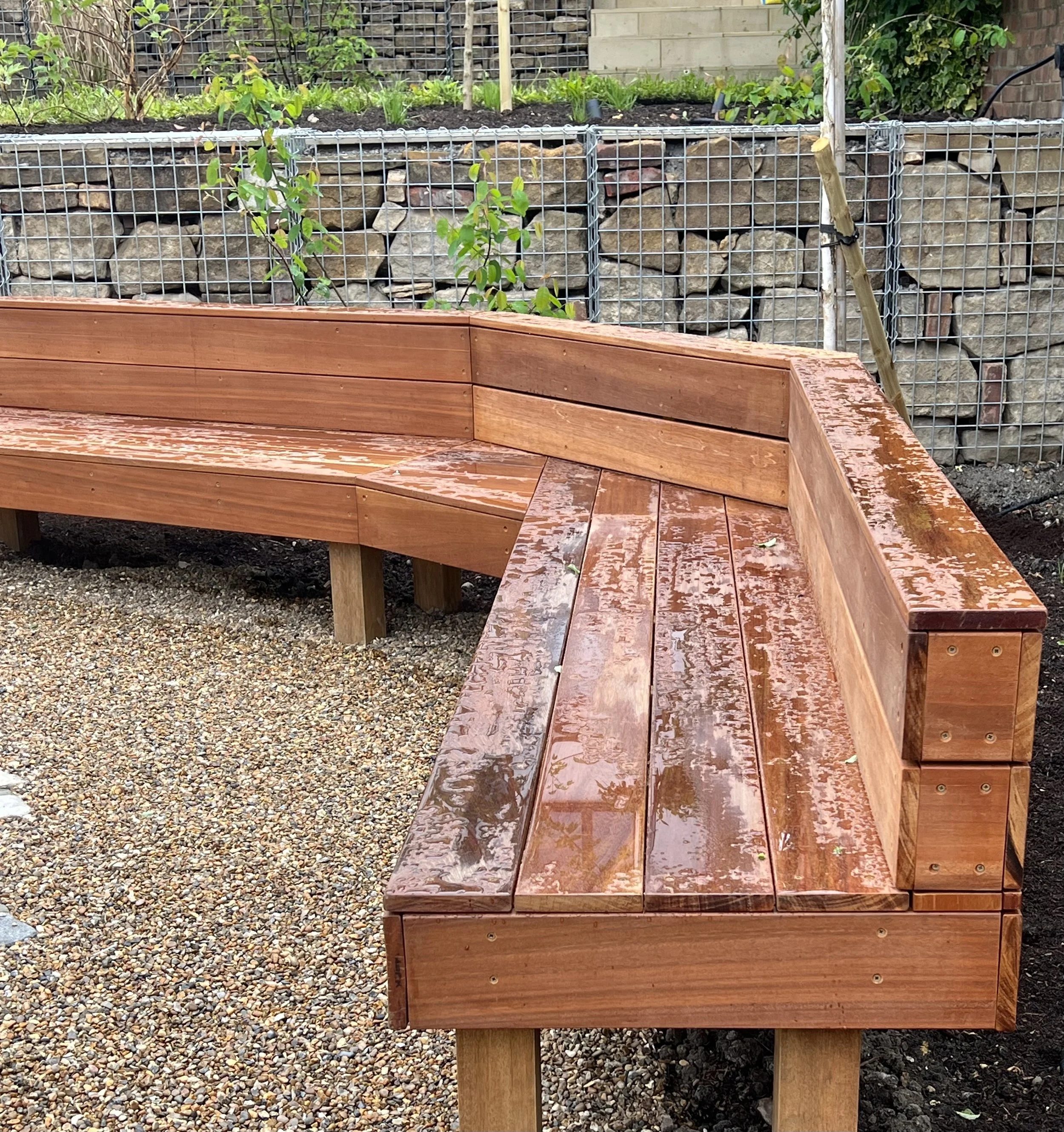 Timber seats and seating pods were design by Richard J Day and built on site.